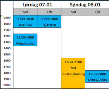 Baneoppsett for en normaluke på Årbogen i vinter, dvs. i perioden fra 2. januar og frem til påske.